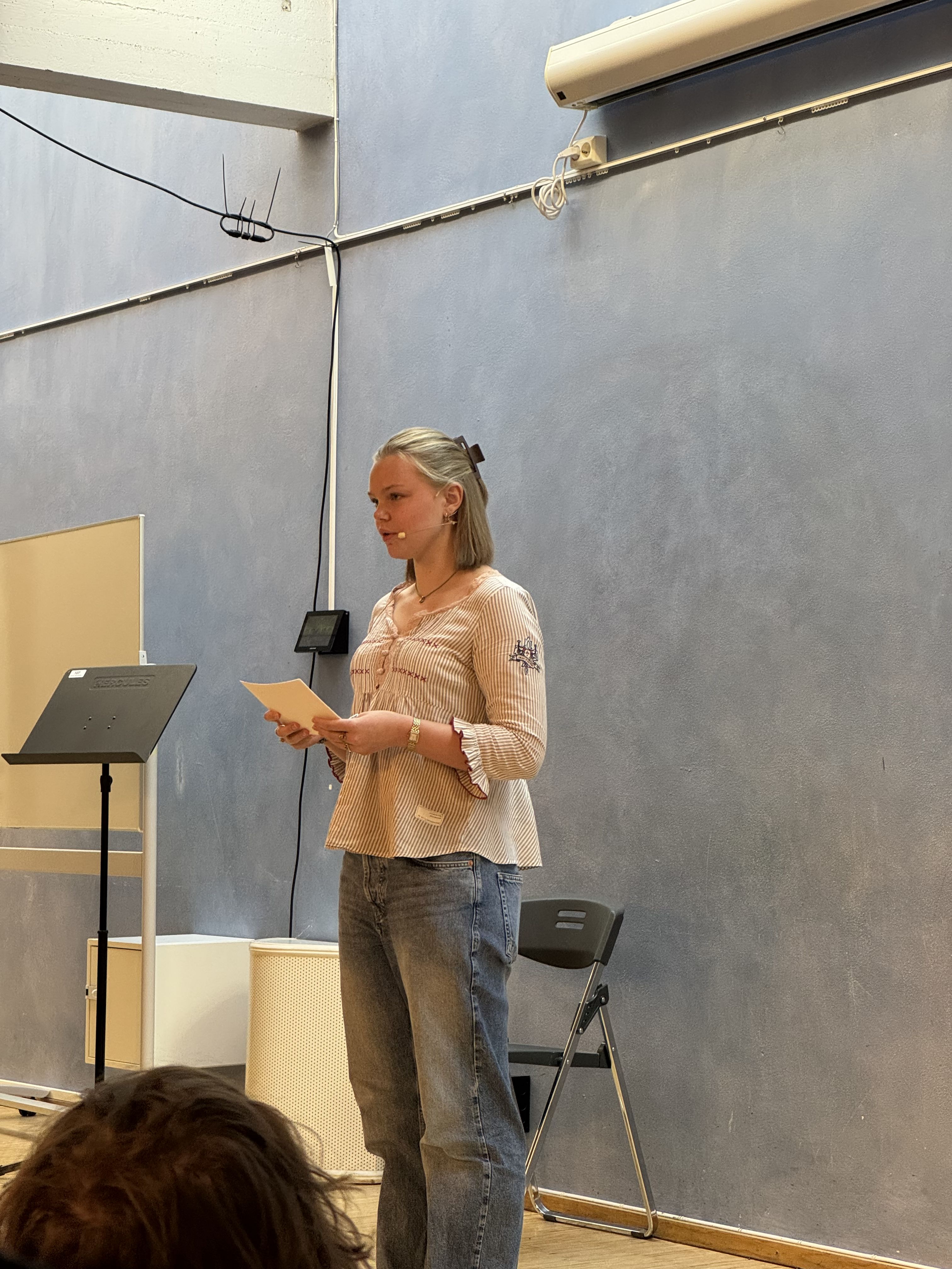 Dette er tredje gang VG1-trinnet på OBS er med på Ta ordet-konkurransen. Norsklærerne har vært med på digital Ta ordet-workshop i forkant, og satte VG1-klassene i gang med innføring i retorikk i september. Siden da har elevene idémyldret om vår tids problemer, funnet fakta, levert taleutkast, flikket på språk og argumenter og øvd med stoppeklokke for å sjekke om de holder seg innenfor tidsrammen. Opplegget rundt Ta ordet-konkurransen er inspirerende og tydelig. Deliberative taler skal inspirere til handling, og taleren skal både skissere et problem og peke på løsninger, slik at publikum forstår hvordan de kan bidra til å forandre verden til det bedre. Vi gratulerer Lilja Aares med seieren!